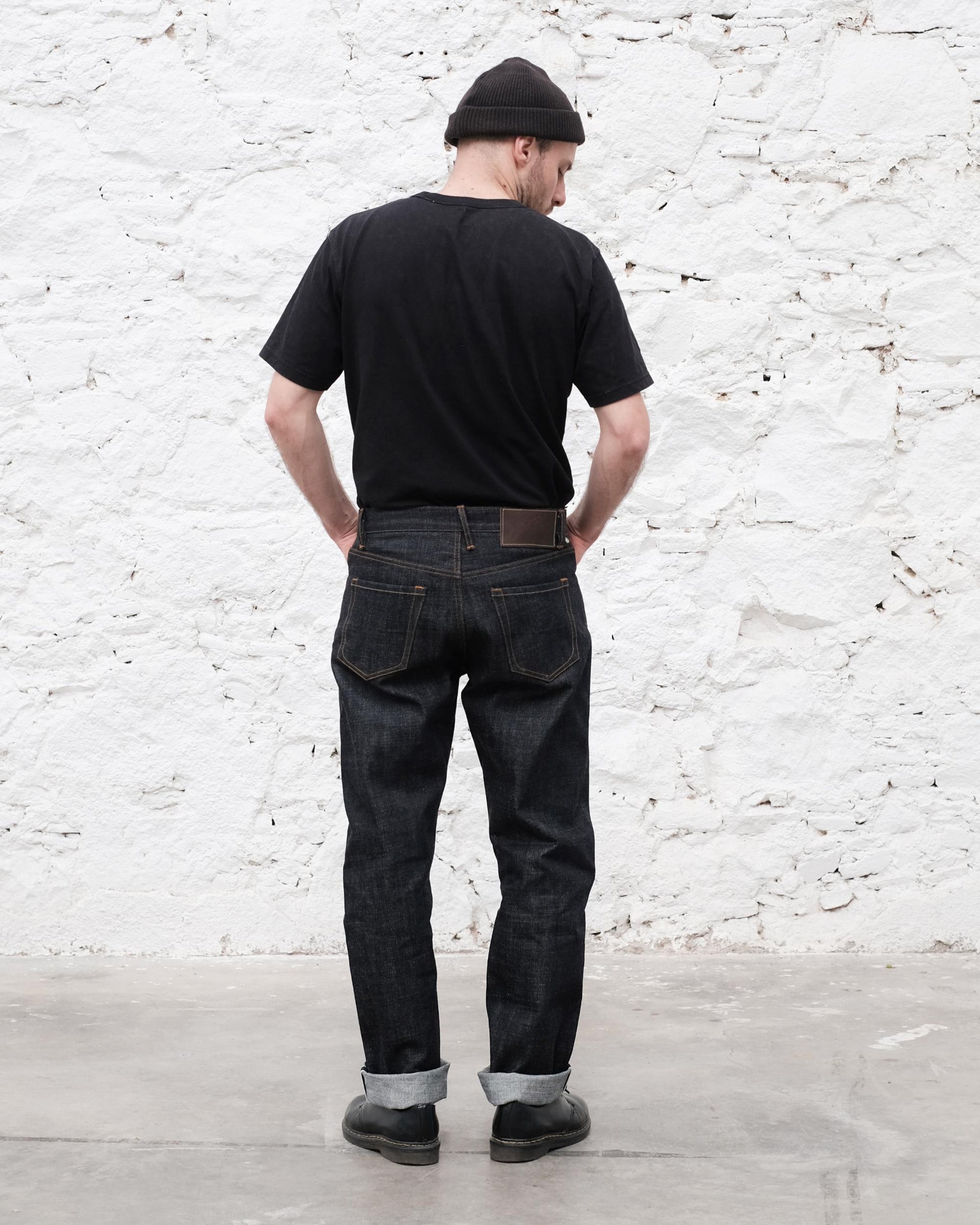 El teixit: Inspirat en els vorells robustos dels anys cinquanta, aquest denim barreja cotons australians i nord-americans en un teixit fort i desigual. Produït en telers de gravetat a baixa tensió, té una textura flamejada distintiva i un to indi profund i extra fosc. Amb el temps, els fils d'ordit solts creen un degradat atrevit d'estil vintage, igual que els originals.