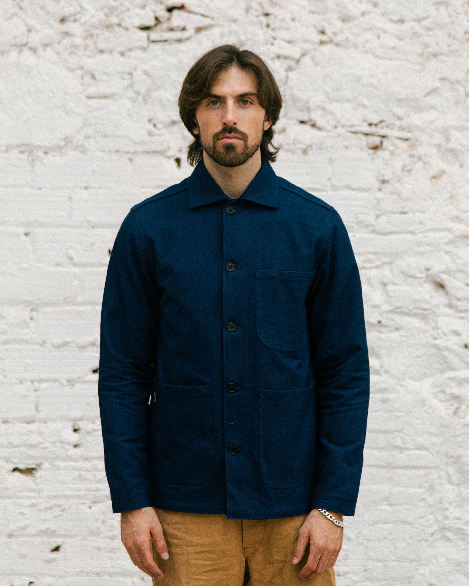 Inspired by the utilitarian jackets once worn by carpenters and French labourers, this piece combines function, comfort, and timeless simplicity.